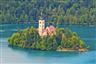 The island pictured is Bled Island, Lake Bled, Slovenia. Located in the Julian Alps and in the former Jugoslavia, two of my grandparents were born there. Visiting Bled is among the wonderful treats of today's Europe!